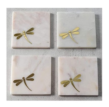 Đa chức năng Bảng trang trí hình vuông đá cẩm thạch khắc vàng bướm Cà Phê Trà uống đế lót ly với 4 mảnh