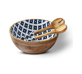 Doğal Mango ahşap emaye baskılı salata servis kasesi