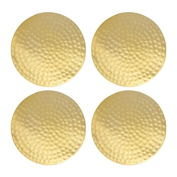环保金属黄金抛光锤打设计圆形4件酒吧啤酒杯杯垫价格便宜